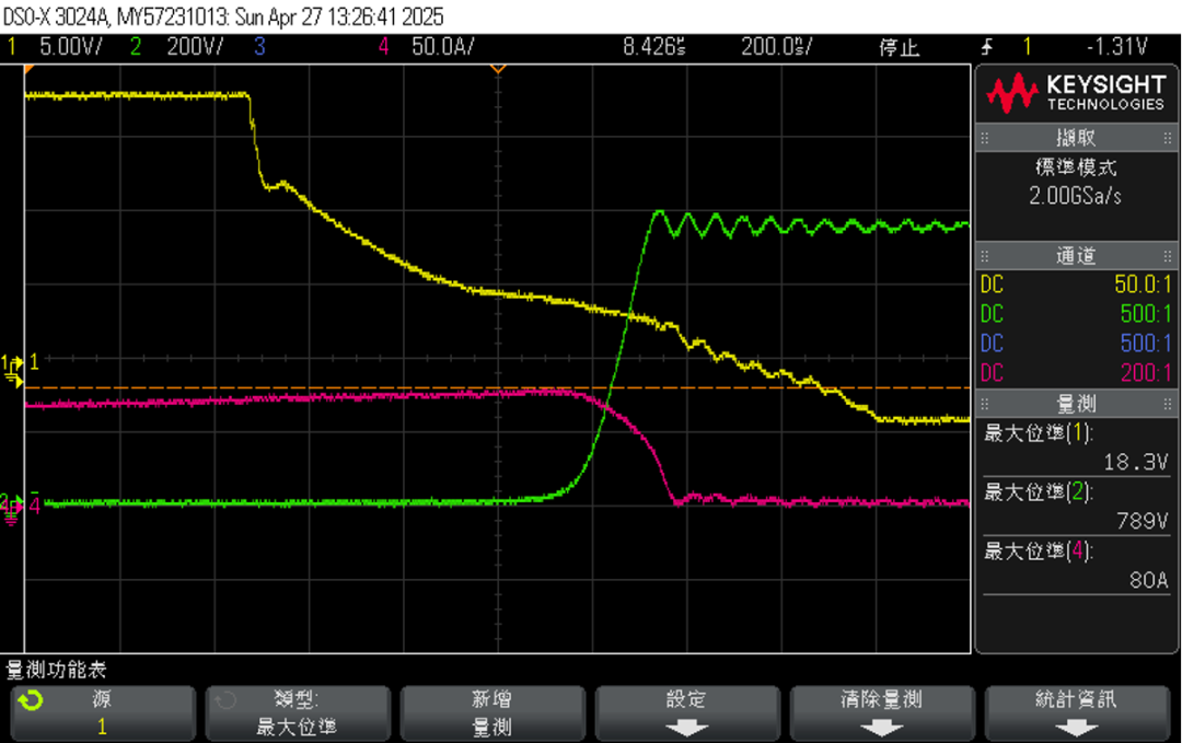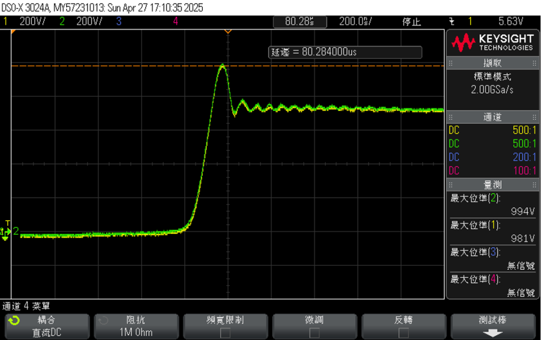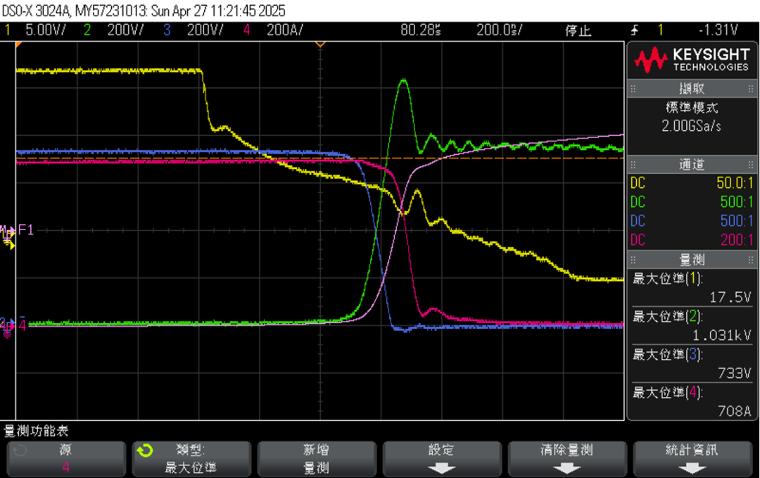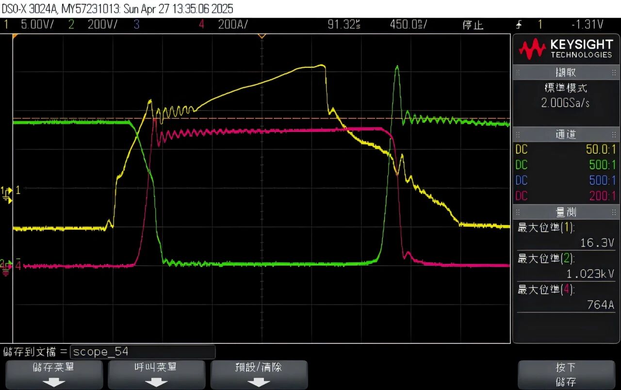 750V/700A双脉冲最大应力1023V,在安全范围内且有较大余量